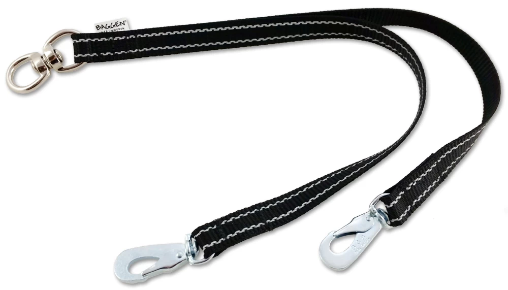 Koppelstukken zodat u 2 honden aan 1 lijn kunt bevestigen. U kunt uit meerdere kleuren kiezen en met reflectie aan 1 kant of helemaal effen zwart. Met zweedse sterke haken (BGB). De koppelstukken hebben een draaibare(swivel) ringen zodat de lijn niet gedraaid raakt.
