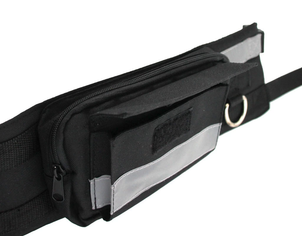Tevens heeft de heupgordel met zakken, twee grote zakken met ritssluiting om spullen in op te bergen, op deze zakken zit tevens een extra zakje met klittenbandsluiting. Door de reflecterende strepen bent u ook beter zichtbaar bij in donkere condities.