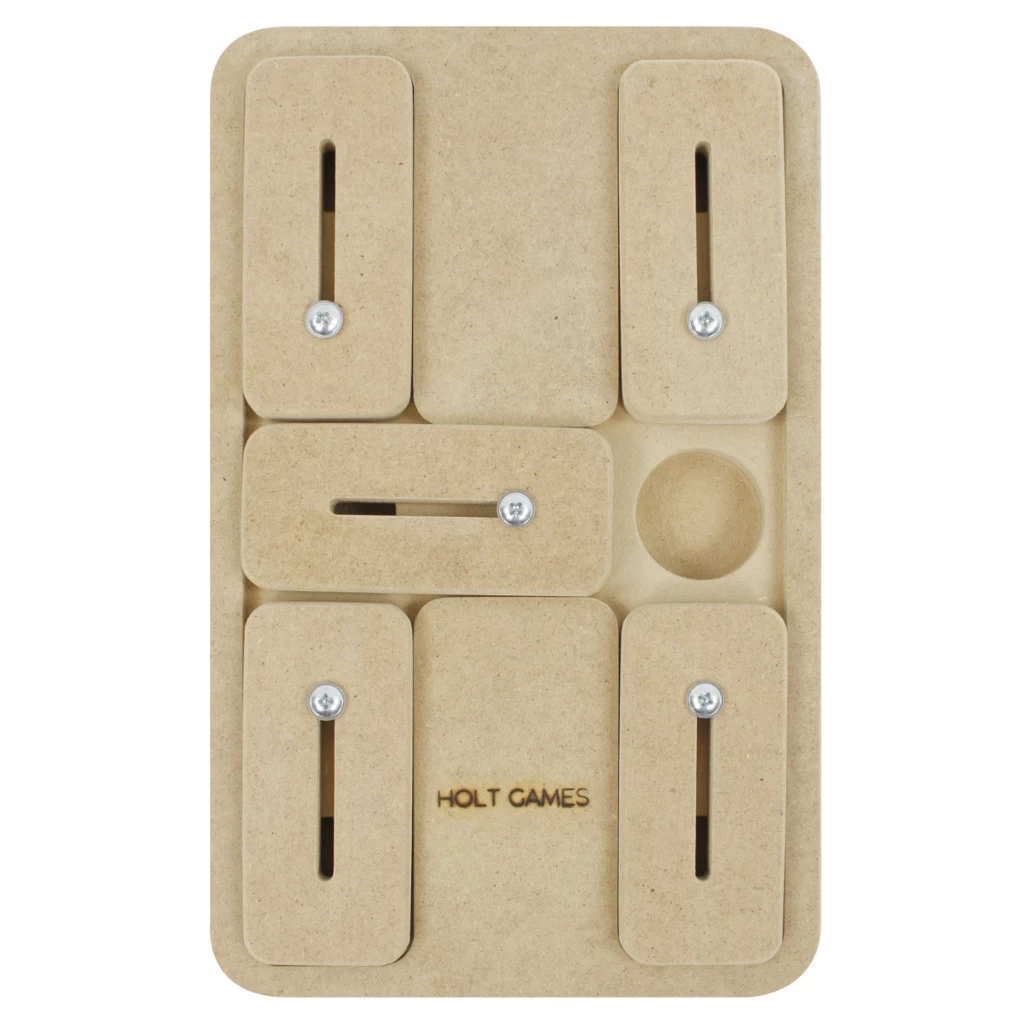 De blokjes schuiven heen en weer, waardoor er iedere keer weer een vakje vrijkomt. Het middelste schuifje is alleen de gebruiken indien alle andere blokjes goed staan. Dit geeft de puzzel een extra uitdaging. Dit spel heeft geen losse onderdelen.