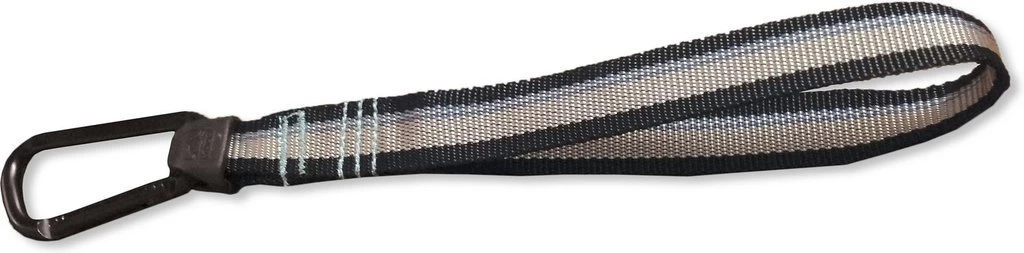 De karabijn doet u aan het tuig van de hond. Lengte van de lus is 26 cm, de totale lengte inclusief karabijn is 34 cm.