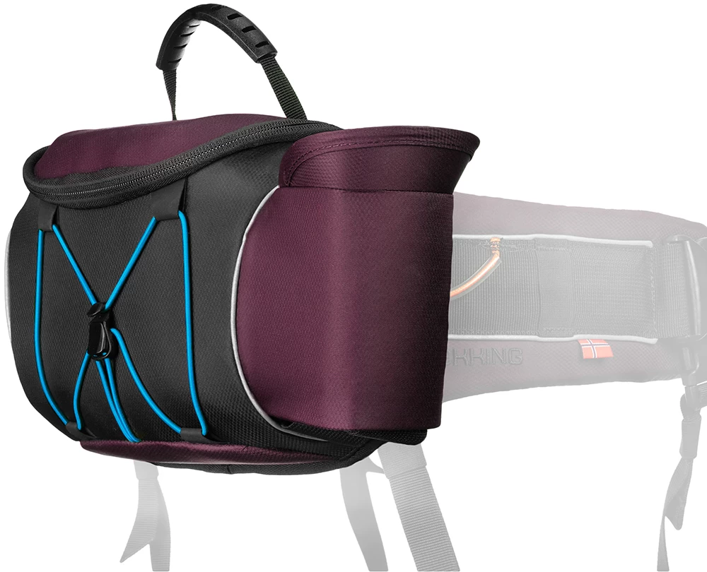 De Heuptas voor Trekking Heupgordel is perfect om enkele klein spulletjes, waarvoor geen rugzak nodig is, mee te nemen. Doordat het gewicht op heupen gedragen wordt, verminder je de stress op je schouders en rug. De tas is ruim en kan een camera, voedsel of andere dagelijkse benodigdheden bevatten, en heeft een aparte houder aan de zijkant voor een drinkfles. Binnenin de tas is er een vakje voor sleutels en een smartphone, en een kabeldoorvoer voor een koptelefoon. De tas heeft een elastisch koord aan de buitenkant van de tas. Een verstevigd handvat maakt het dragen van de tas gemakkelijk als u de heupgordel niet draagt. De Trekking heuptas is een accessoire voor de Trekking heupgordel en wordt geleverd in twee kleuren die bij de heupgordel passen, paars of blauw.