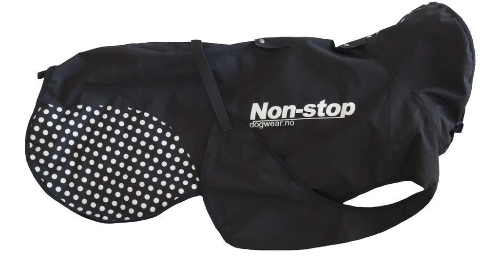 De pro variant heeft drukknopen in de hals om de halsopening groter te maken bij het aantrekken. Er is een opening op de rug/nek om de hond aan een halsband of tuig aan te lijnen.