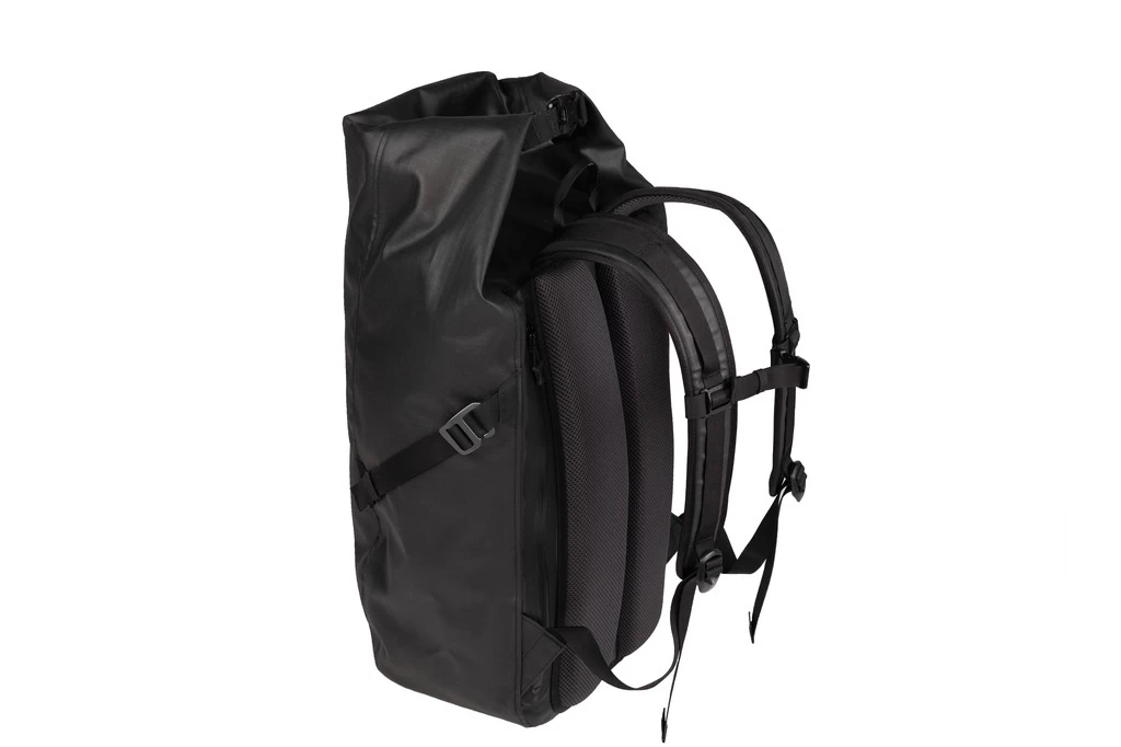 De rugzak heeft een grote rolltopopening naar het hoofdvak en een apart achtervak. De rolltop sluit met Duraflex gespen, er is ook een toegang met rits aan de zijkant met een stevige YKK rits. Het zware ripstop Tarpaulin materiaal van de rugzak is waterafstotend en heeft getapete naden om je uitrusting onder alle weersomstandigheden te beschermen.
