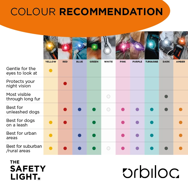 Orbiloc Dog Dual Light is een hoogwaardig LED-veiligheidslampje dat ervoor zorgt dat u en uw hond zichtbaar zijn voor anderen vanaf een afstand tot vijf kilometer, wanneer u onderweg bent in de schemering of in het donker.