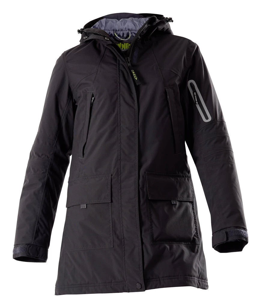 – De jas is aan de onderkant verstelbaar met elastisch koord