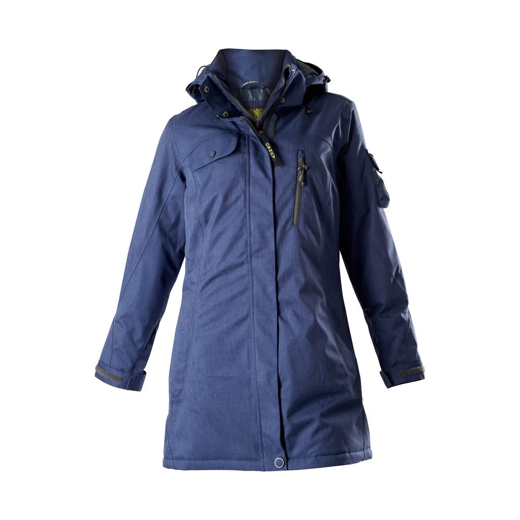 Mooie moderne lang, gesneden en gewatteerde dames winter parka.