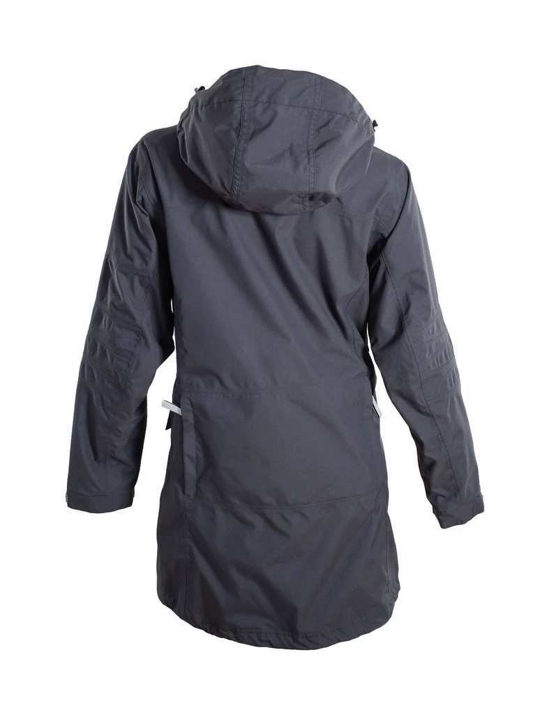 – De jas is aan de onderkant verstelbaar met elastisch koord
