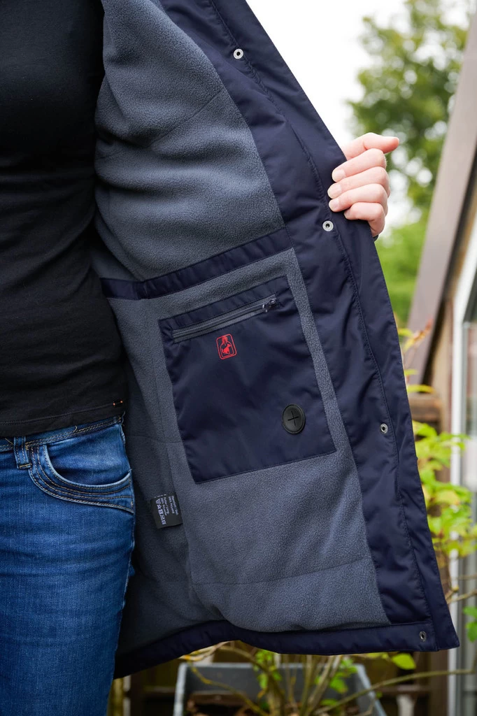 Mooie extra lange gevoerde Parka jas. Met fleece voering aan de binnenkant en een hoge kraag.