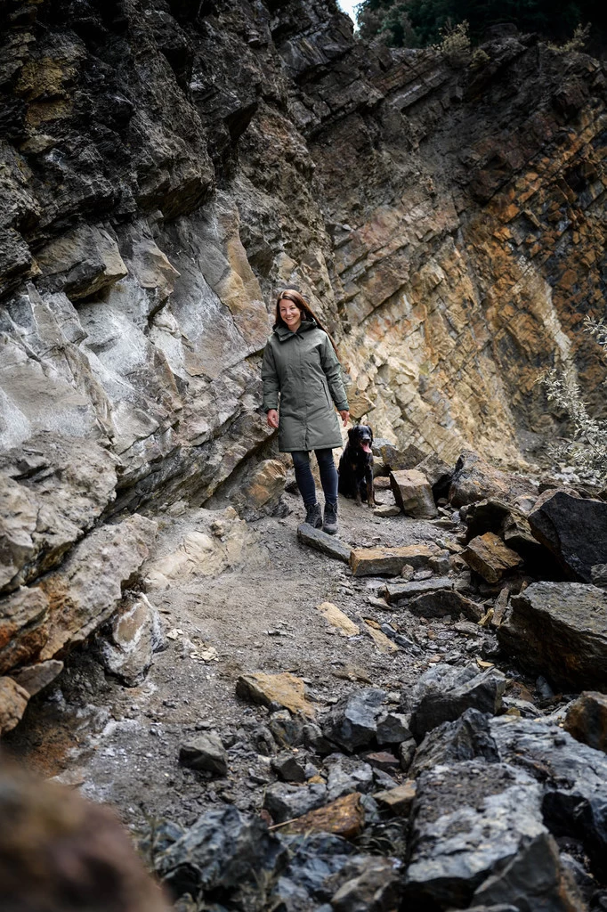 Met alle aanwezige specifieke Owney jaszakken, poepzakjessysteem, en uitneembare koekjes jaszak. Ook op de rug een tunnelzak met rits. 2 weg ritsluiting voor optimaal comfort. Deze jas heeft ook elastische binnenmouwen.