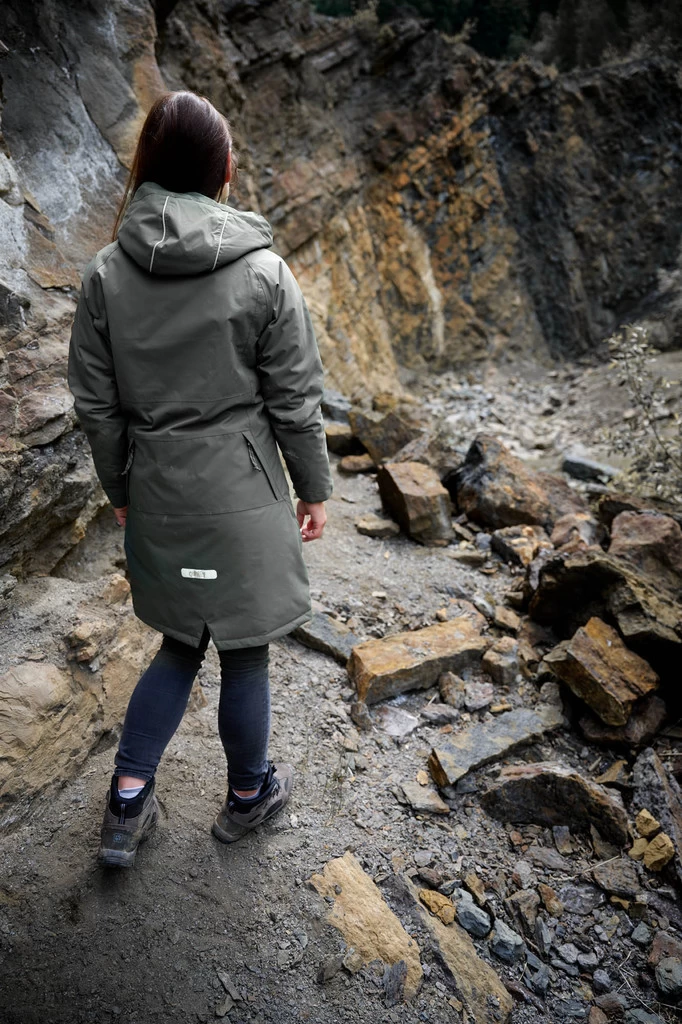 Lekkere extra lange gewatteerde winter jas. Deze jas is ongeveer 10-15 cm langer dan een Parka. Houdt tijdens de wandeling of het trainen de bovenbenen ook lekker warm.