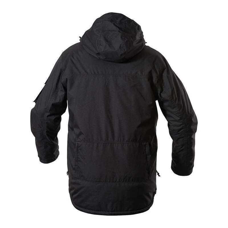De jas heeft volledig getapete naden waardoor hij water- en winddicht is maar wel ademend. De gewatteerde voering zorgt ervoor dat hij ook in het koude seizoen goed draagbaar is.