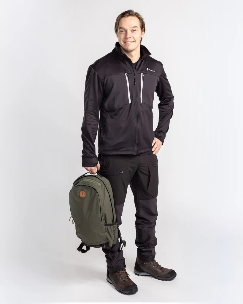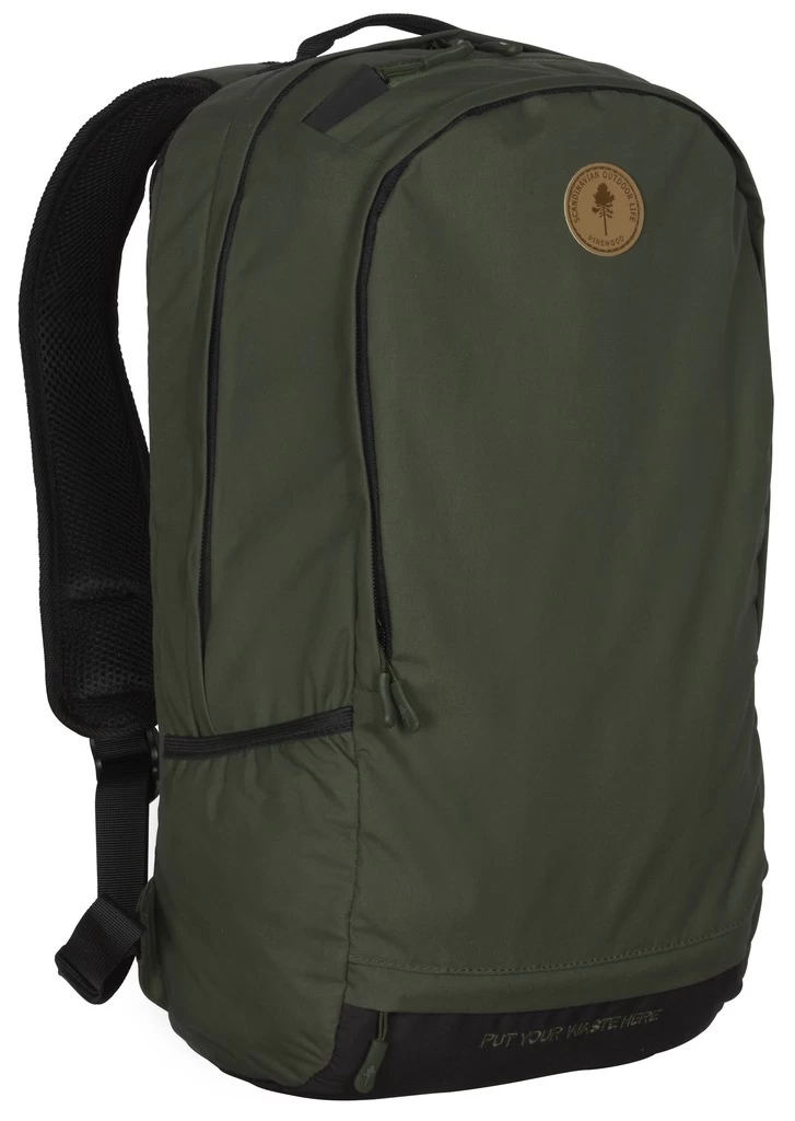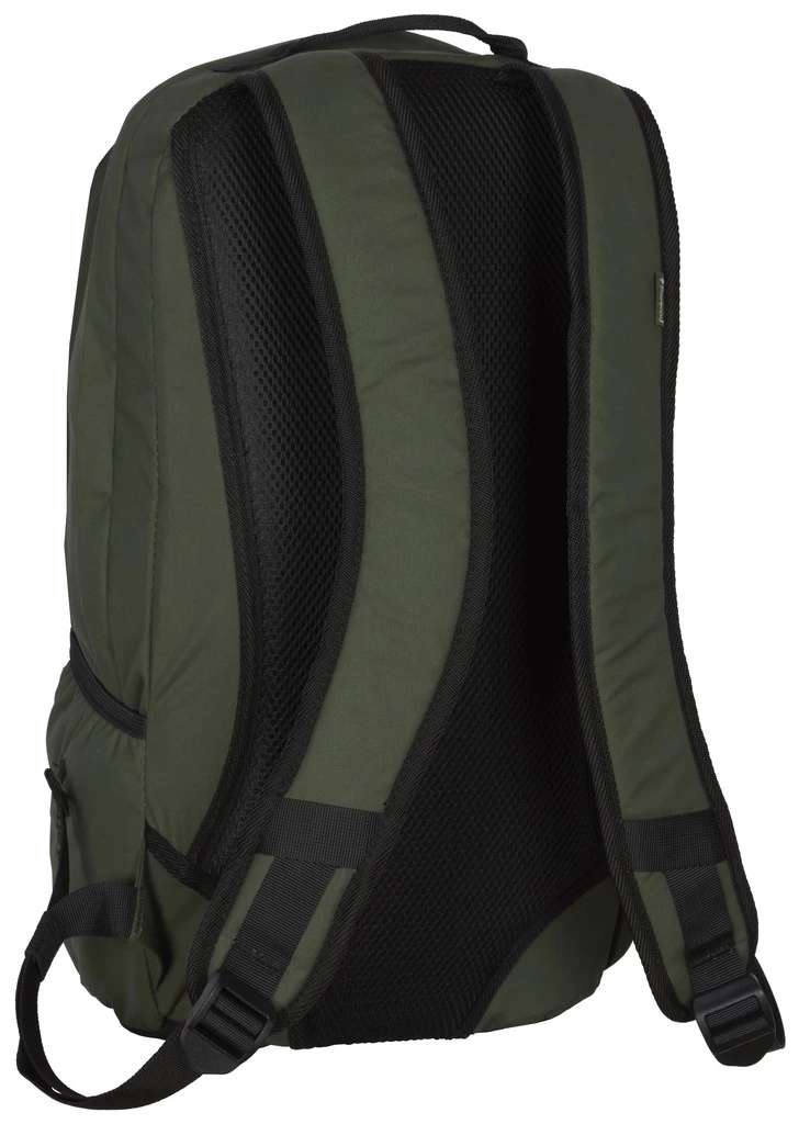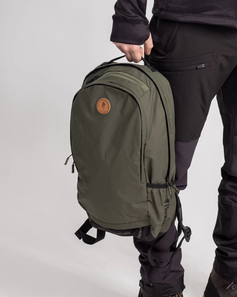 Deze Pinewood® Day Pack heeft een inhoud van 22 liter en heeft meerdere compartimenten om zo makkelijk mogelijk op pad te gaan. Het topvak is makkelijk te bereiken voor de items waar je snel bij wil kunnen. In het grote vak zit een laptopvak en een gaasnet om je spullen makkelijk te verdelen. Aan de voorkant zit een kleiner vak met eveneens een gaasnet. Onderaan de tas vind je een makkelijk te reinigen vak om je vuilnis in op te bergen. De tas heeft een geïntegreerde ‘zitflap’ voor tijdens de koffiepauze en er zijn twee open, elastische compartimenten aan de zijkanten voor bijvoorbeeld je waterfles.