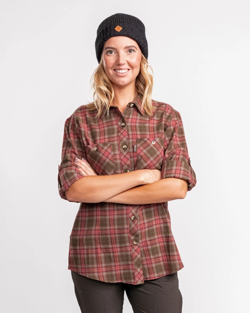 Stijlvolle damesblouse met vrouwelijke pasvorm in geborsteld katoenen flanel.