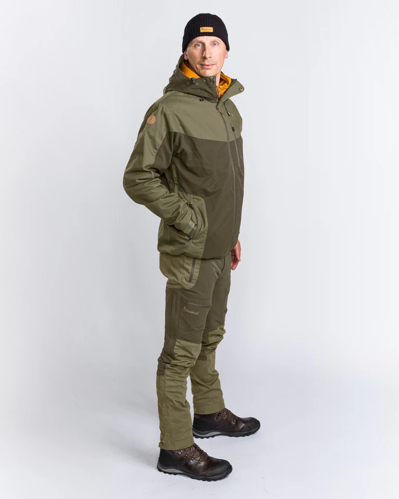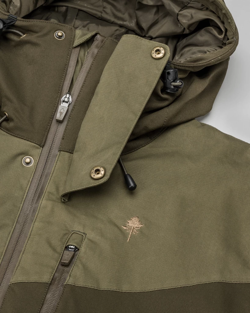 De Pinewood Finnveden Hybrid Extreme jas is een wind- en waterdicht jack in elastisch, gewaxt TC-materiaal. De jas heeft een fijne hoge kraag en componenten in 4-way stretch voor een extra soepele pasvorm. De jas is gevoerd met High-Ventilation™ mesh en voorzien van ventilatieopeningen aan beide zijkanten voor uitstekende ademende eigenschappen. De capouchon is een vaste, verstelbare capuchon met klep. De jas heeft getapete naden en een waterafstotende borstzak met waterafstotende ritssluiting. De zoom en mouwen verstelbaar d.m.v. klittenband. De buitenkant is behandeld met biologische impregnering – Bionic Finish® Eco voor extra water- en vuilafstotende eigenschappen. Verkrijgbaar in Donker blauw, Zwart en Olijfgroen.