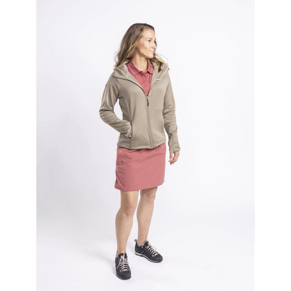 Een dunne en soepele sweater/hoody van hoogelastisch powerfleeceâ„¢(mix fleece/softshell materiaal) voor maximale flexibiliteit en comfort. Geborstelde fleece binnenkant voor een zacht en comfortabel gevoel. Praktische zakken. Armen met versterkte duimgaten. Verstelbaar aan de zoom aan de onderkant en bij de capuchon. Vrouwelijke snit. 95% polyester, 5% elastaan.