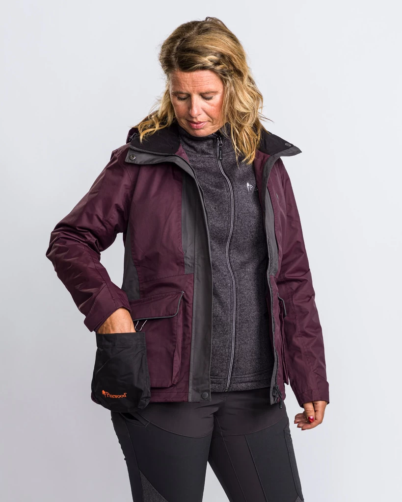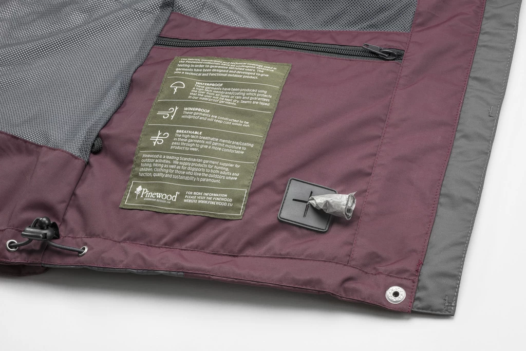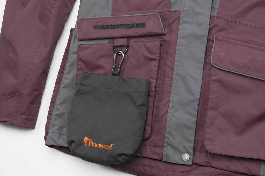 Ruime voorzakken aan beide zijden, met magneetsluiting en D-ring, waar de klep van de zakken met klittenband in de zak kan worden vastgezet. Hoge steekzakken om de handen warm te houden, dubbele borstzakken en drie makkelijk te bereiken binnenzakken, waarvan één speciaal is ontworpen voor het opbergen van hondenpoepzakjes.