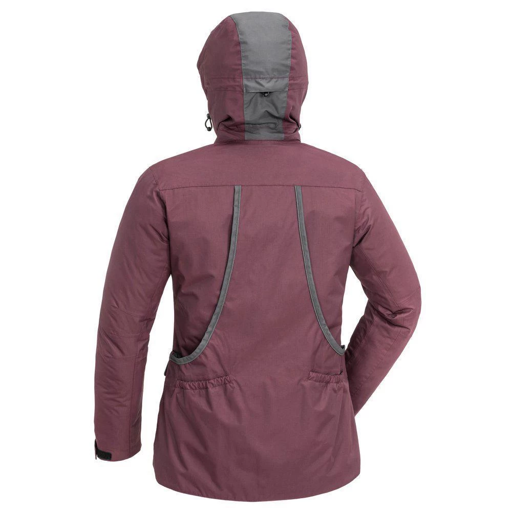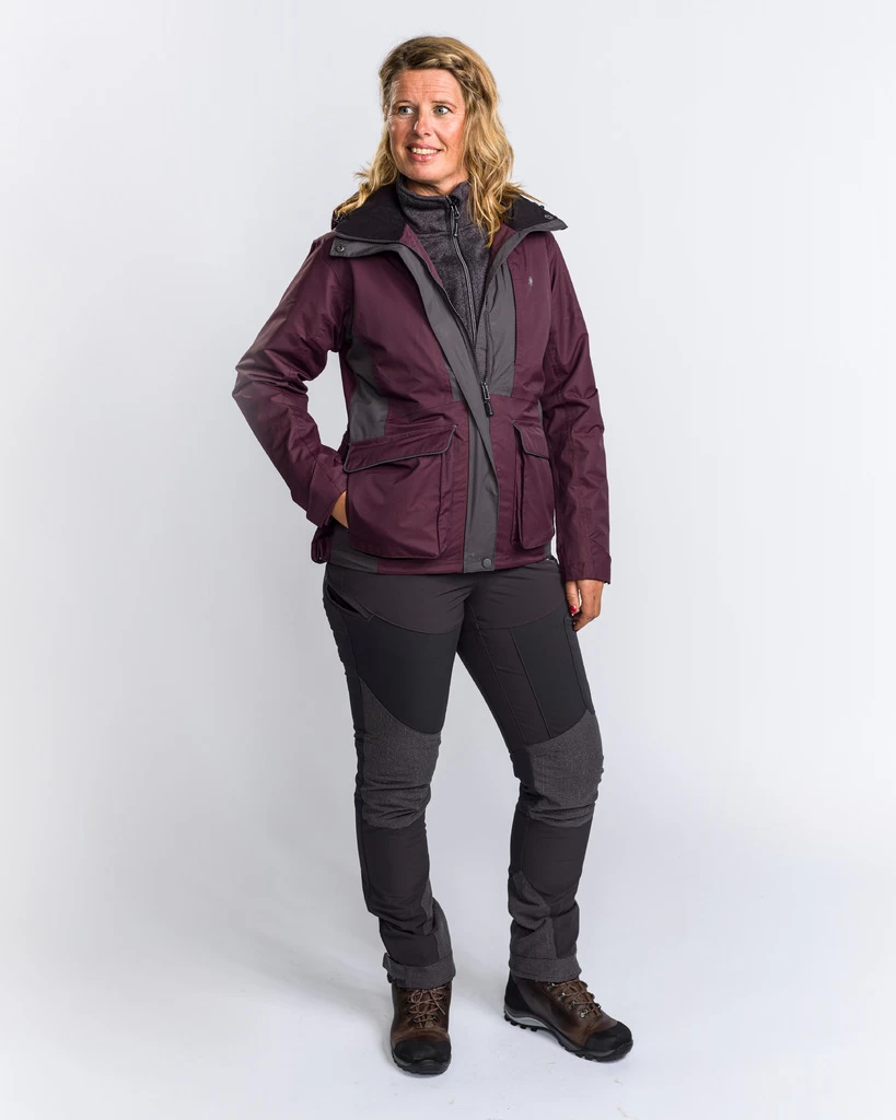 De jas heeft een vrouwelijke snit, is verstelbaar aan de onderzijde. De manchetten zijn verstelbaar door middel van klittenband. Gevoerd met ventilerend gaas voor extra comfort. Voorzien van getapete naden, een verstelbare en afneembare capuchon met versterkte klep voor extra bescherming tegen regen. De achterzak is door middel van een rits aan de onderkant te openen zodat er eenvoudig logo’s of namen op aangebracht kunnen worden.