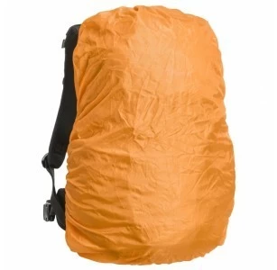 - Oranje regenhoes is makkelijk uit te vouwen vanuit het ritsvakje onderaan de rugzak.