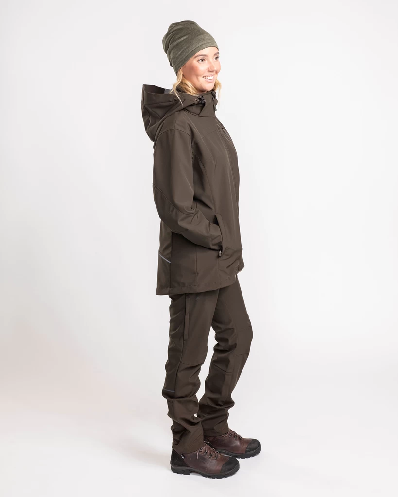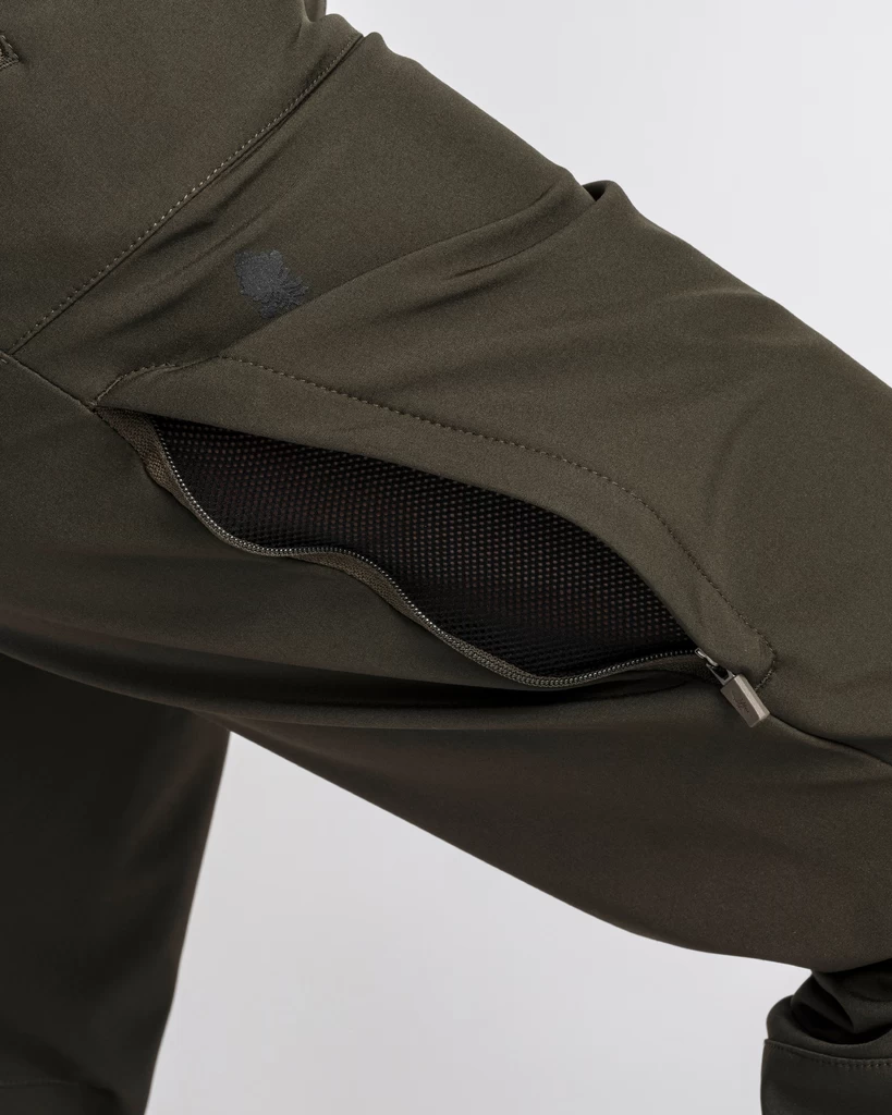 Winddichte en waterafstotende sofsthellbroek van drie lagen met een ademend membraan. Zachte, geborstelde binnenkant voor extra comfort. Zakken met ritsen en ventilatieritsen met meshvoering aan de zijkanten. Voorgevormde knieën. Reflecterende details voor extra veiligheid. Geen getapete naden. Verstelbare onderkant met ritsen en klittenband.